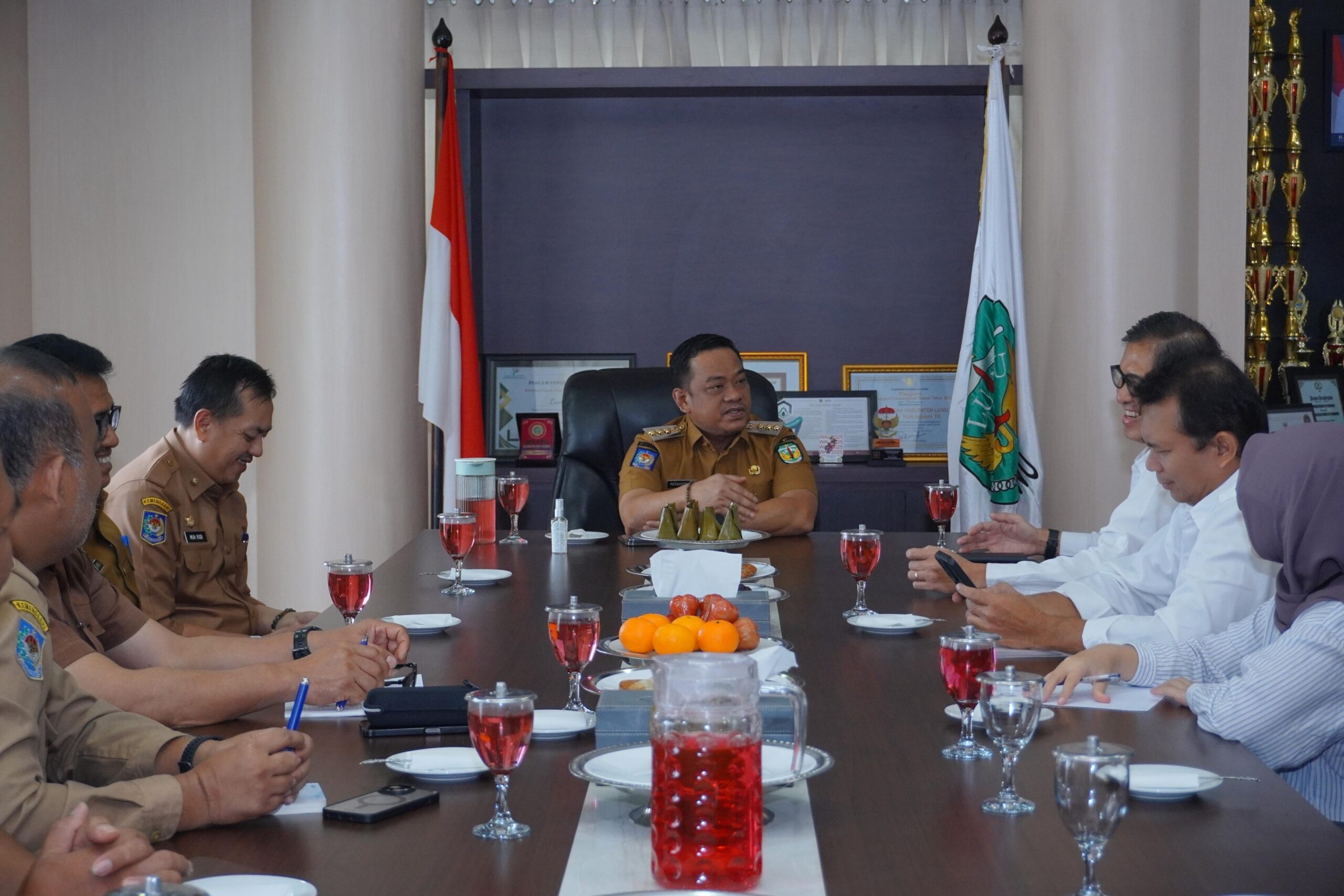 Dalam pertemuan tersebut, Bupati Luwu memaparkan sejumlah program strategis pemerintah daerah dalam menjaga kelestarian lingkungan, salah satunya melalui penanaman pohon produktif di berbagai titik, termasuk di ruas jalan dan wilayah rawan longsor.