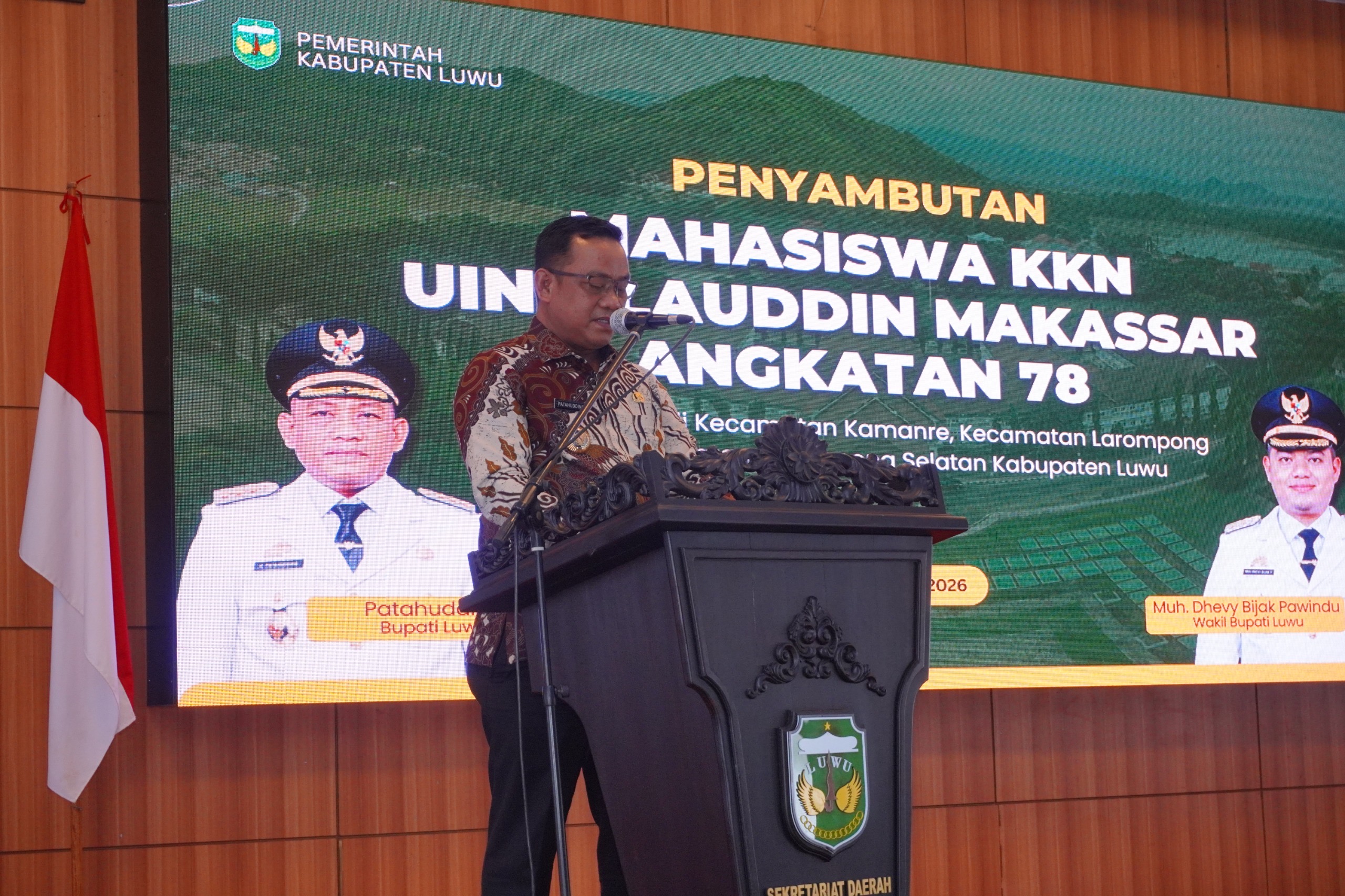 Bupati Luwu, Patahudding, dalam sambutannya menyampaikan apresiasi dan selamat datang kepada seluruh mahasiswa KKN Angkatan 78 UIN Alauddin Makassar yang akan mengabdi di wilayah Kabupaten Luwu.